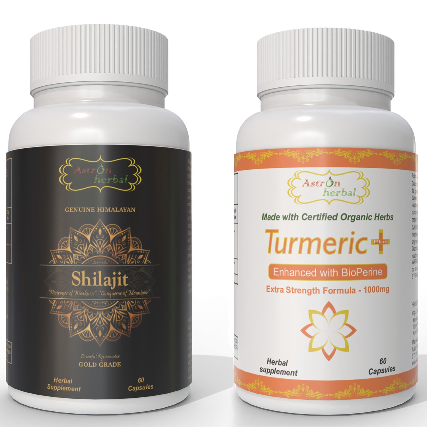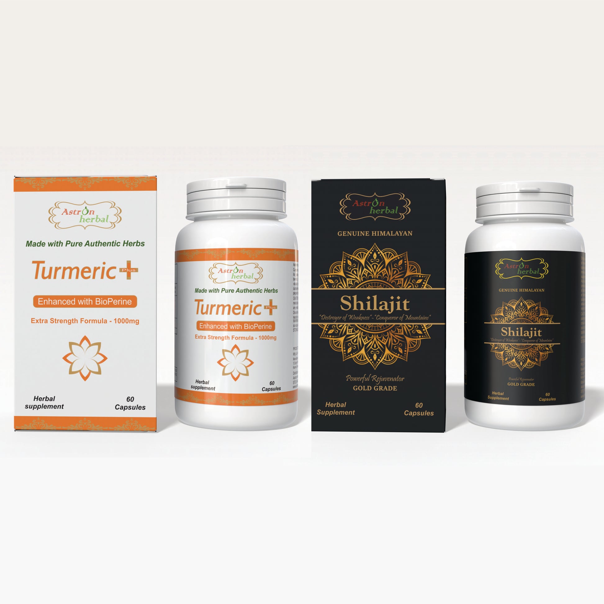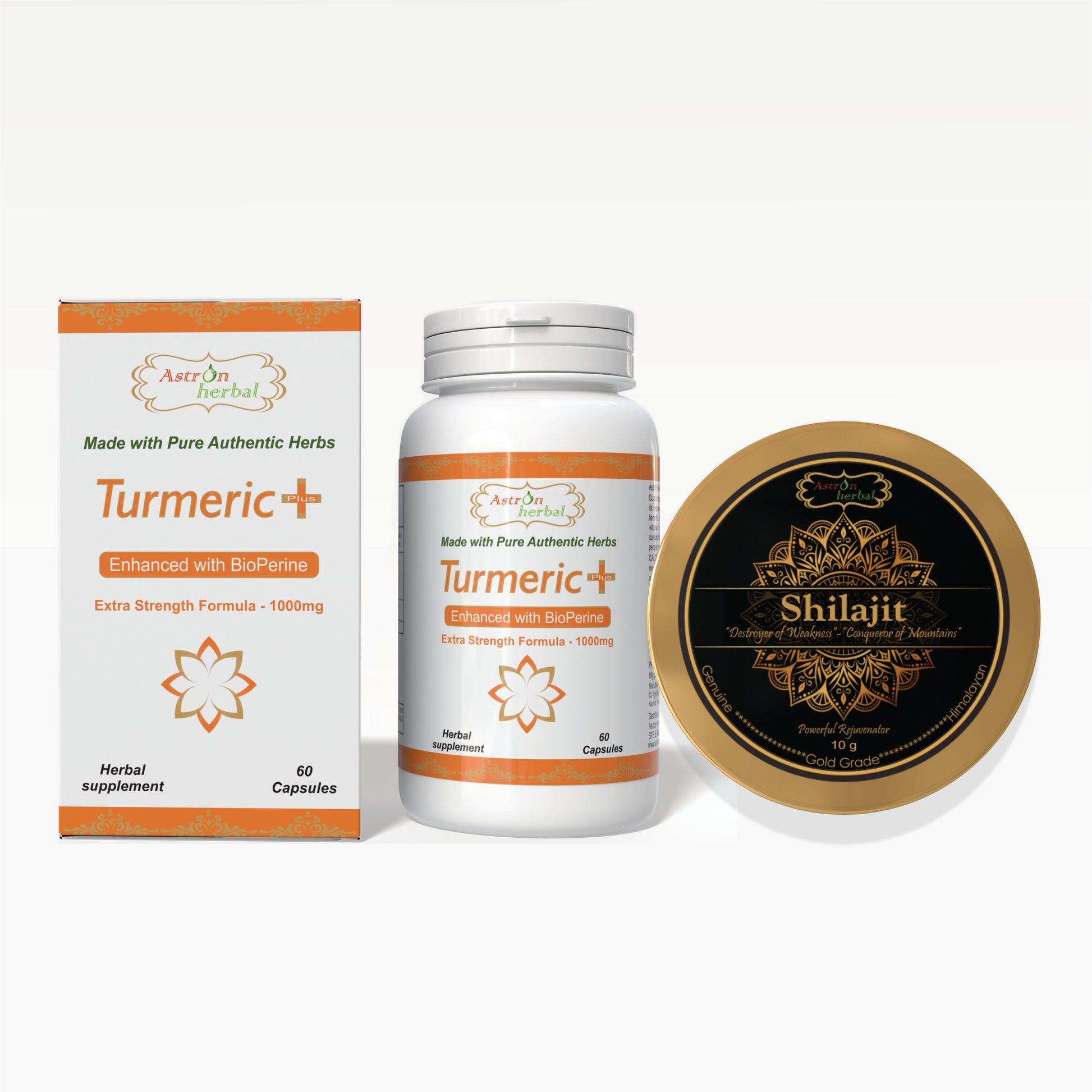 Elevate your joint health with Astron Herbal’s Arthritis & Joint Support Bundle, featuring high-potency Turmeric and Shilajit capsules. Our Turmeric contains 95% curcuminoids, offering powerful anti-inflammatory benefits while easing symptoms of arthritis and gout through aiding in joint discomfort and enhanced mobility. Our Shilajit complements the Turmeric through its rich concentration of 40-50% fulvic and humic acid, fortifying joint tissues and supporting natural inflammatory responses. Together, they form a dynamic duo, delivering superior joint support to keep you active and pain-free with the finest herbs nature has to offer.